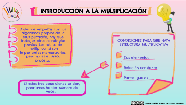 Antes de empezar con los algoritmos propios de la multiplicación, hay que trabajar otras estrategias previas. Las tablas de multiplicar sí son importantes memorizarlas, pero no es el único proceso.