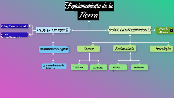 Descripción visual y practica sobre el funcionamiento de la tierra a través de sus procesos de flujo de materia y energía así como sus ciclos biogeoquimicos,