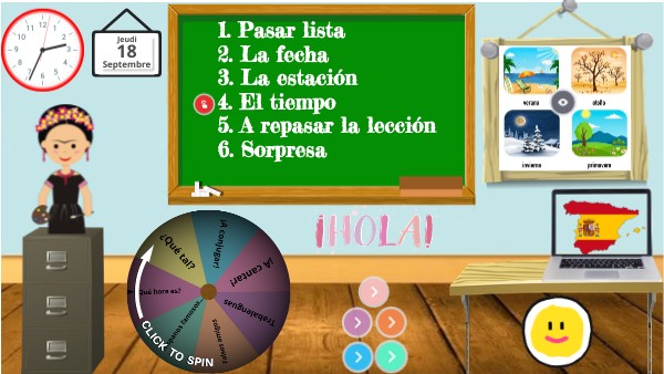 1. Pasar lista 2. La fecha 3. La estación 4. El tiempo 5. A repasar la lección 6. Sorpresa