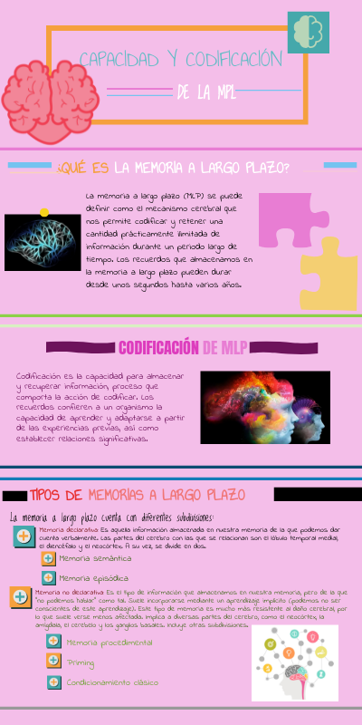 La memoria a largo plazo (MLP) se puede definir como el mecanismo cerebral que nos permite codificar y retener una cantidad prácticamente ilimitada de información durante un periodo largo de tiempo. Los recuerdos que almacenamos en la memoria a largo plazo pueden durar desde unos segundos hasta varios años.