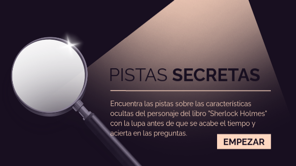 Encuentra las pistas sobre las características ocultas del personaje del libro "Sherlock Holmes" con la lupa antes de que se acabe el tiempo y acierta en las preguntas.