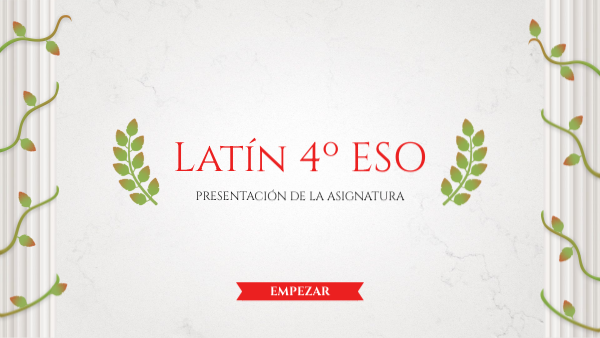 Vamos a seguir en el presente curso los temas que vienen estructurados en el libro de Latín de 4º de E.S.O. de la Editorial Casals. Trabajaremos 3 unidades cada trimestre.