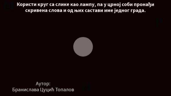 Користи круг са слике као лампу, па у црној соби пронађи скривена слова и од њих састави име једног града.