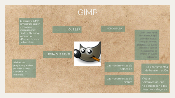 El programa GIMP sirve para la edición y manipular imágenes, muy similar a Photoshop, pero con la diferencia