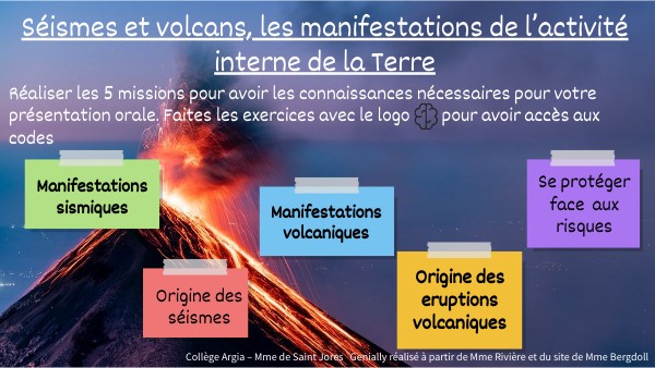 Réaliser les 5 missions pour avoir les connaissances nécessaires pour votre présentation orale. Faites les exercices avec le logo pour avoir accès aux codes