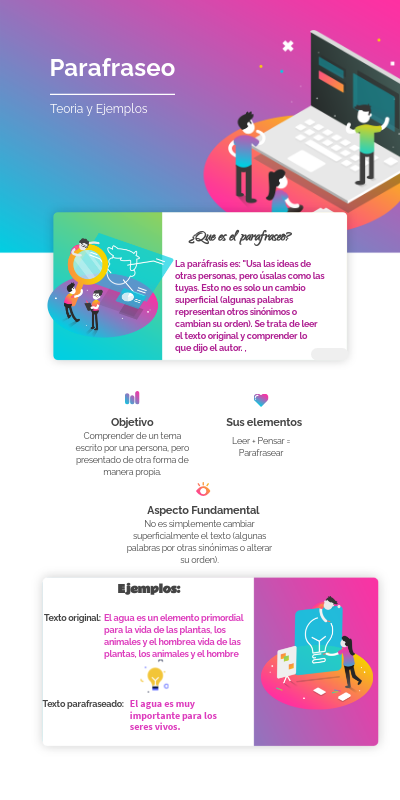 Comprender de un tema escrito por una persona, pero presentado de otra forma de manera propia.
