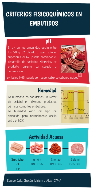 Esta infografía corresponde a los tres criterios fisicoquímicos principale en embutidos. Para la materia de Calidad e Inocuidad en la Industria Cárnica, de la Carrera de Industrias Alimentarias, del ITESP.
