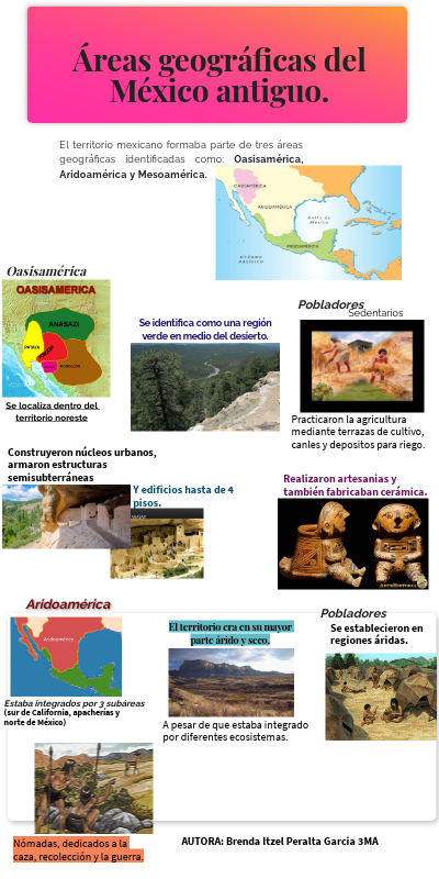 El territorio mexicano formaba parte de tres áreas geográficas identificadas como: Oasisamérica, Aridoamérica y Mesoamérica.
