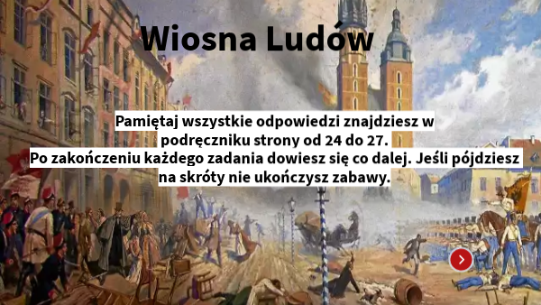 Pamiętaj wszystkie odpowiedzi znajdziesz w podręczniku strony od 24 do 27. Po zakończeniu każdego zadania dowiesz się co dalej. Jeśli pójdziesz na skróty nie ukończysz zabawy.