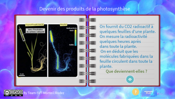 On fournit du CO2 radioactif à quelques feuilles d'une plante. On mesure la radioactivité quelques heures après dans toute la plante. On en déduit que les molécules fabriquées dans la feuille circulent dans toute la plante. Que deviennent-elles ?