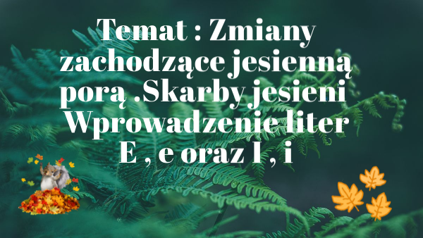 Temat : Zmiany zachodzące jesienną porą .Skarby jesieni Wprowadzenie liter E , e oraz I , i