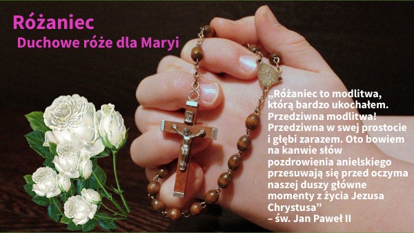 „Różaniec to modlitwa, którą bardzo ukochałem. Przedziwna modlitwa! Przedziwna w swej prostocie i głębi zarazem. Oto bowiem na kanwie słów pozdrowienia anielskiego przesuwają się przed oczyma naszej duszy główne momenty z życia Jezusa Chrystusa” – św. Jan Paweł II