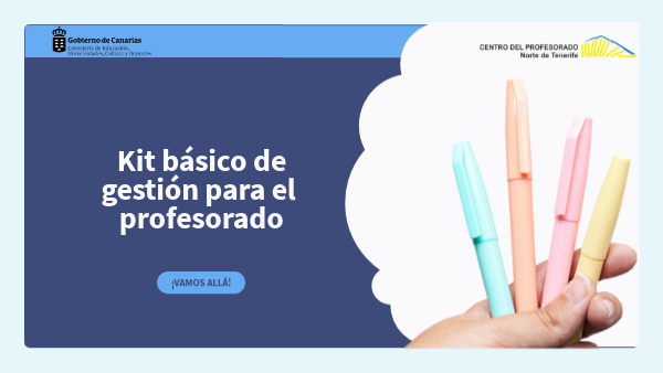 Kit básico para el profesorado, pretende ayudar a localizar los accesos básicos para la gestión administrativa, área personal y educativa de la Consejería de Educación, Universidades, Cultura y Deportes (CEUCD) del Gobierno de Canarias.