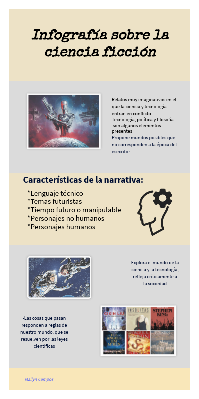*Lenguaje técnico*Temas futuristas *Tiempo futuro o manipulable *Personajes no humanos *Personajes humanos