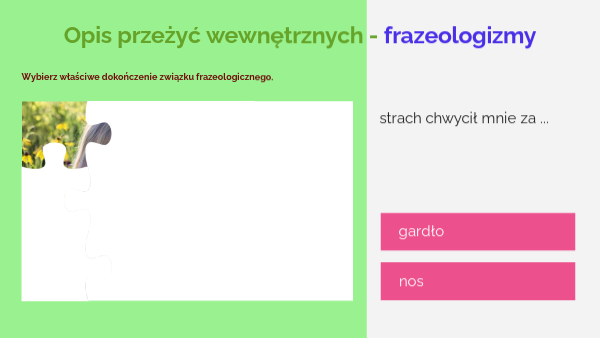 Stosuj frazeologizmy, aby oddać stan wewnętrzny bohatera.
