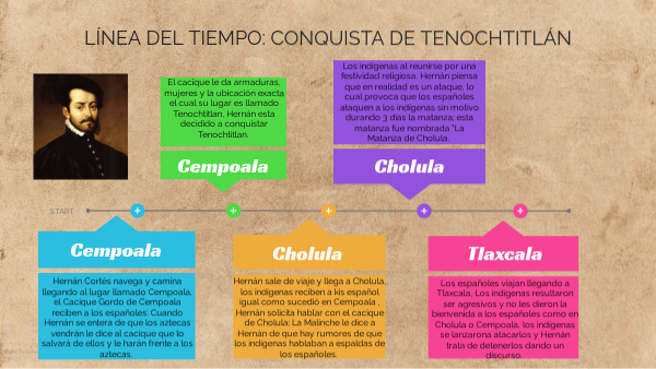 En este trabajo se verán todos los sucesos importantes que ocurrieron en la Conquista de Tenochtitlan, personajes importantes y en donde ocurrieron