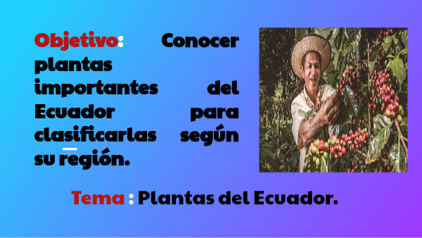 Objetivo: Conocer plantas importantes del Ecuador para clasificarlas según su región.