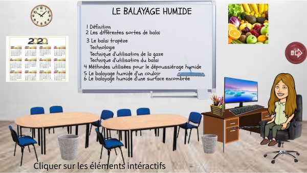 Faire le du sol à balayer, puis le balai en vers soi et en traçant sur le sol de manière toute la surface à Entretenir.