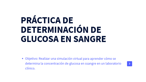 - Objetivo: Realizar una simulación virtual para aprender cómo se determina la concentración de glucosa en ssangre en un laboratorio clínico.