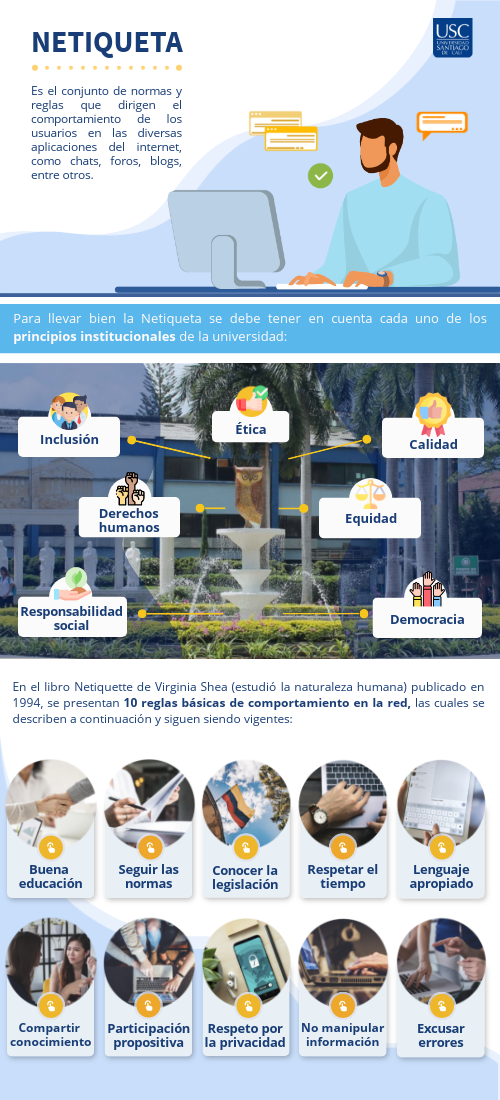 Para llevar bien la Netiqueta se debe tener en cuenta cada uno de los principios institucionales de la universidad: