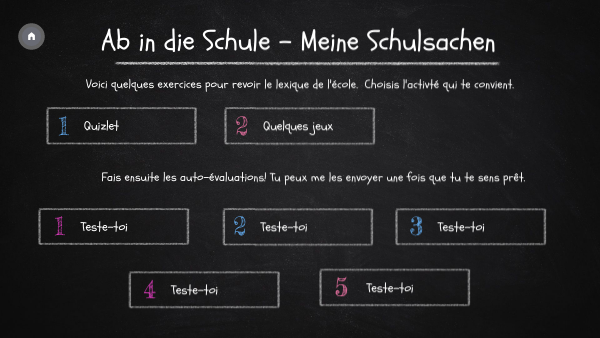 Voici quelques exercices pour revoir le lexique de l'école. Choisis l'activté qui te convient.