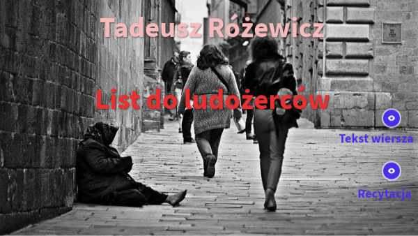 Napisz apel do Europejczyków o przestrzeganie praw człowieka względem obywateli próbujących na nowo ułożyć sobie życie w innym państwie. Mottem listu uczyń parafrazę słów z wiersza Tadeusza Różewicza „Nie bądźmy ludożercami!”.