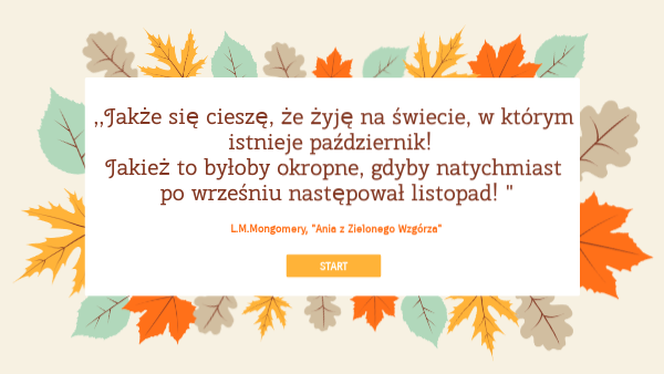 ,,Jakże się cieszę, że żyję na świecie, w którym istnieje październik! Jakież to byłoby okropne, gdyby natychmiast po wrześniu następował listopad! "
