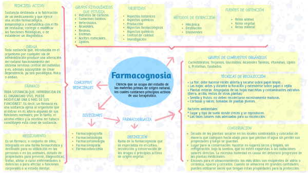 Ciencia que se ocupa del estudio de las materias primas de orígen natural, los cuales contienen principios activos de uso terapéutico.