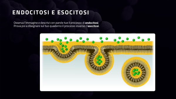 Osserva l’immagine e descrivi con parole tue il processo di endocitosi. Prova poi a disegnare sul tuo quaderno il processo inverso: l’esocitosi.