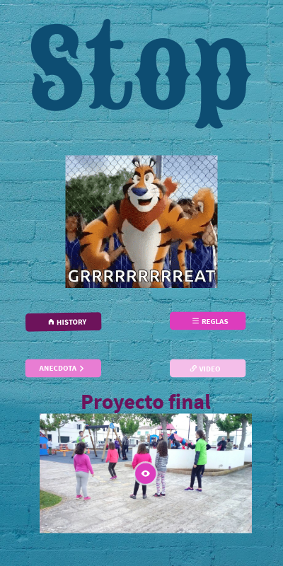 1.Juego para 4 o más personas. 2.Se dibuja un circulo con un gis escribiendo la palabra “STOP” en el centro y se divide en el numero de personas que van a jugar. 3.Cada quien escribe el nombre de un País sin que se repita alguno. 4.No se vale esconderse para que no lo toque. 5.No se vale brincar y brincar y mover los pies rápidamente para que no lo toquen con la pelota 6 Tiza para dibujar el tablero 8 El juegar no queda congelado si la pelota toca los pies o manos 9 No se puede tocar a al contricante cuando este en el stop 10 Sie el jugador no cogela a nadie queda eliminado 11 No se puede tocar al contricante