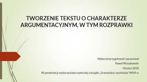 Materiał przygotował i opracował Paweł Wyszkowski Olsztyn 2018 W prezentacji wykorzystano materiały z książki „Gramatyka i stylistyka” WSiP-u
