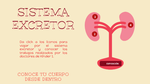 Da click a los íconos para viajar por el sistema excretor y conocer los trabajos realizados por los doctores de Kínder 1.