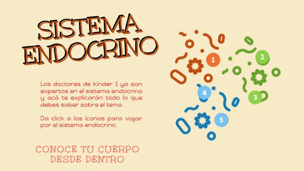 Los doctores de kínder 1 ya son expertos en el sistema endocrino y acá te explicarán todo lo que debes saber sobre el tema. Da click a los íconos para viajar por el sistema endocrino.