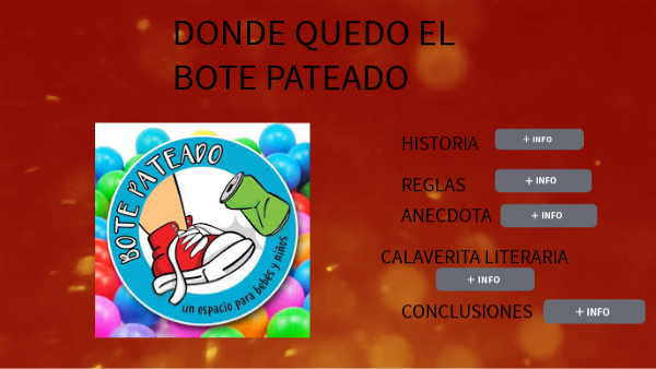 Abuelo materno: cuando yo era niño saliamos a jugar muchos juegos entre ellos el bote pateado ,cuando teminabamos nuestros deveres de la casa mi mama me dejaba salir con mis hermanos y amigos a salir, al momento de jugar este juego que tanto queriamos, ubo un dia en el cual me lastime y me enoje y ya no quise jugar ese juego