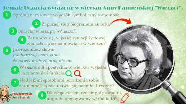 Temat: Uczucia wyrażone w wierszu Anny Kamieńskiej "Wieczór".