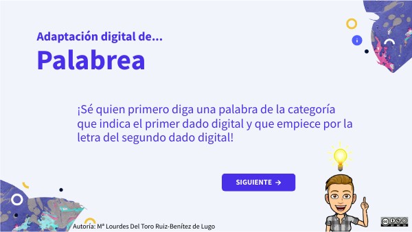 ¡Sé quien primero diga una palabra de la categoría que indica el primer dado digital y que empiece por la letra del segundo dado digital!