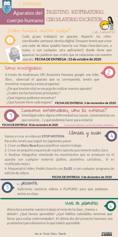 Cada grupo trabajará un aparato. Repartir los roles: coordinador, portavoz, técnico digital. Despues teneis que crear una nube de ideas (podéis hacerla con https://wordart.com, a mano, o con cualquier otra aplicación?) donde tiene que aparecer las palabras que creéis que se relacionan con vuestro aparato. FECHA DE ENTREGA : 23 de octubre de 2020