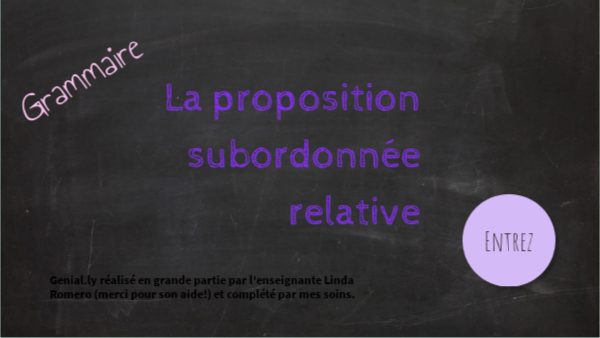 Dans ce Genial.ly, apprenez, révisez et entraînez-vous pour être au point sur la proposition subordonnée relative !