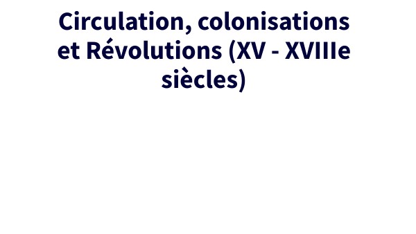 Circulation, colonisations et Révolutions (XV - XVIIIe siècles)