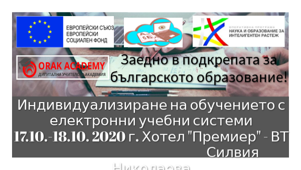 Индивидуализиране на обучението с електронни учебни системи 17.10.-18.10. 2020 г. Хотел "Премиер" - ВТ Силвия Николаева
