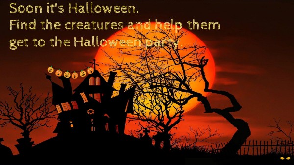 Soon it's Halloween. Find the creatures and help them get to the Halloween party.