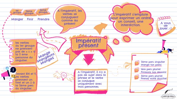 A l’impératif, il n’y a pas de sujet dans la phrase et le verbe se conjugue uniquement avec trois personnes.