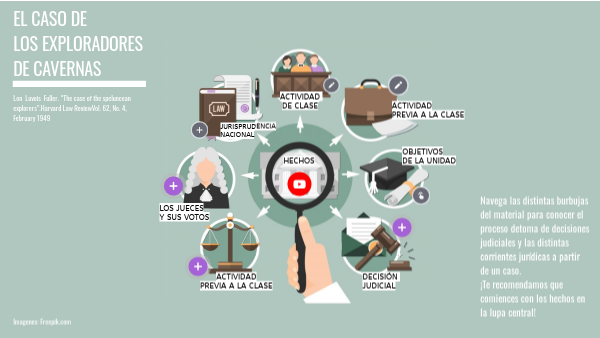 Navega las distintas burbujas del material para conocer el proceso detoma de decisiones judiciales y las distintas corrientes jurídicas a partir de un caso. ¡Te recomendamos que comiences con los hechos en la lupa central!