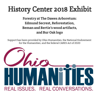 Forestry at The Dawes Arboretum:Edmund Secrest, Reforestation, Beman and Bertie's wood artifacts, and Bur Oak logo