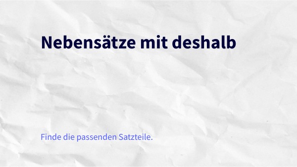 Und jetzt bist du dran!Schreib Sätze mit deshalb.