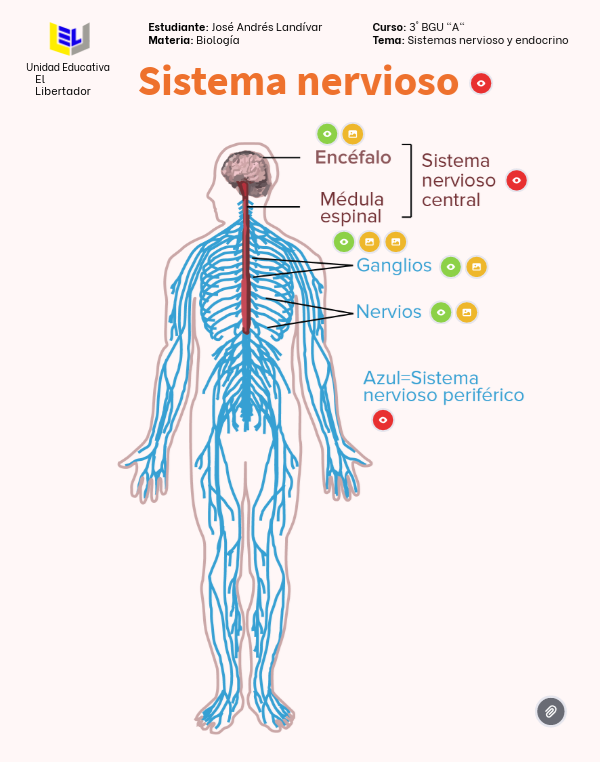 Estudiante: José Andrés Landívar Curso: 3° BGU "A" Materia: Biología Tema: Sistemas nervioso y endocrino