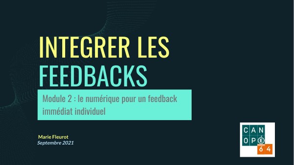 Modules numériques : Module 2 : feedback immédiat individuel - 18/05 14h Module 3 : feedback immédiat en classe entière - 31/05 17h Module 4 : feedback différé et personnalisé écrit - 07/06 17h Module 5 : feedback différé et personnalisé audio et vidéo - 15/06