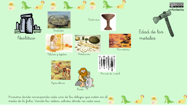 Arrastra donde corresponda cada uno de los dibujos que están en el medio de la ficha. Viendo los vídeos sabréis dónde va cada cosa.