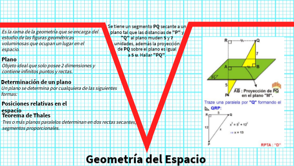Se tiene un segmento PQ secante a un plano tal que las distancias de "P" y "Q" al plano muden 5 y 7 unidades, además la proyección de PQ sobre el plano es igual a 5 u. Hallar "PQ".