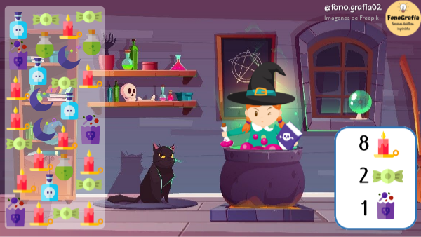Teniendo en cuenta la receta, incorpora los ingredientes para crear la pócima mágica